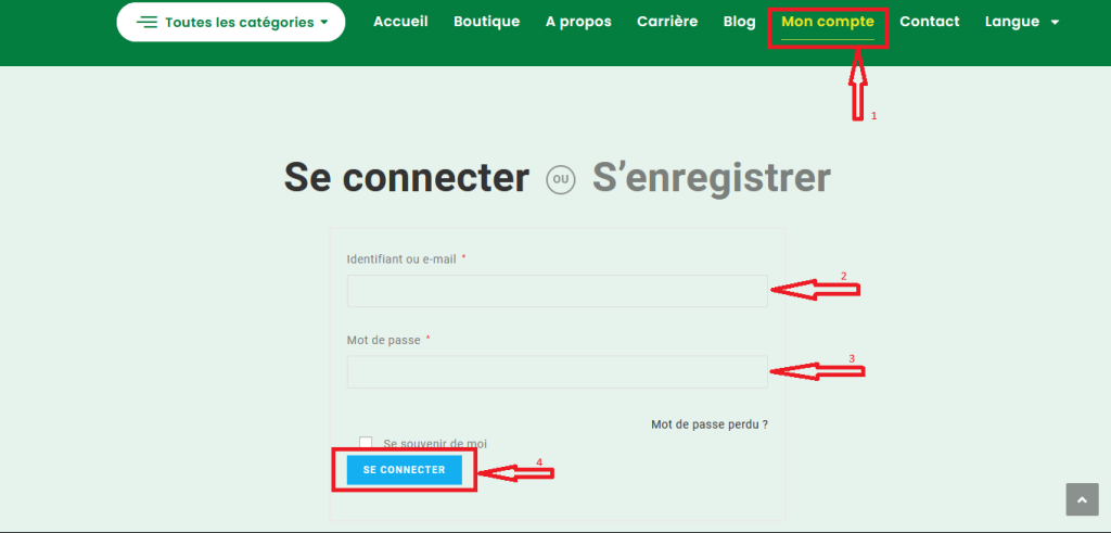 Etape 1: Cliquez sur Connexion. Puis renseignez votre e-mail et mot de passe si vous avez déjà un compte et vous n’êtes pas connecté puis cliquer sur le bouton « se connecter« .